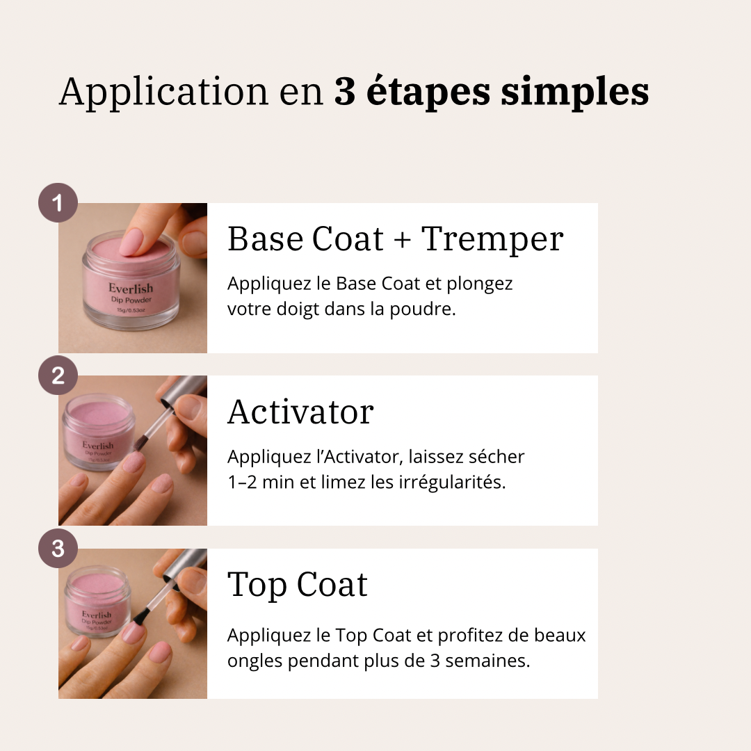 Une Poudre de trempage Everlish suffit pour environ 10 à 15 superbes manucures.