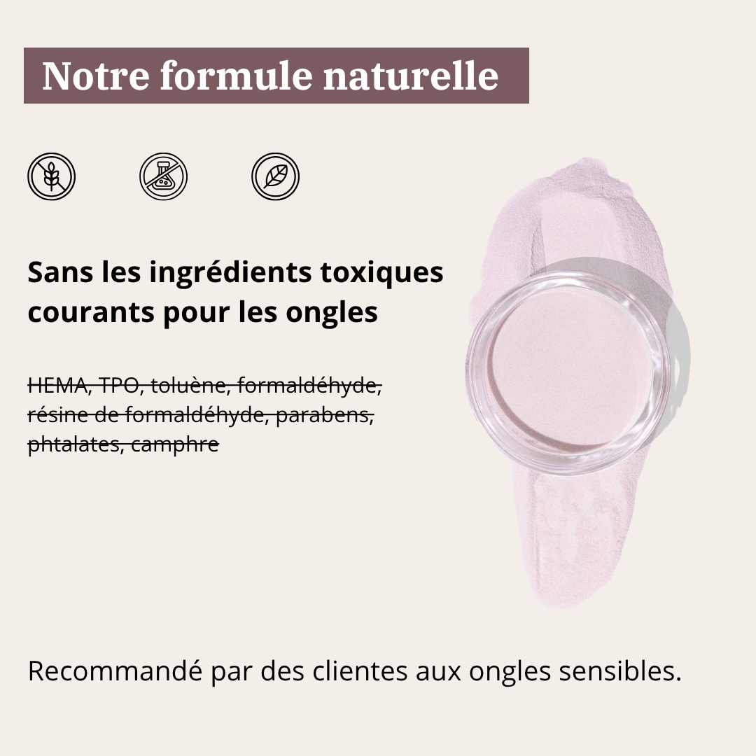 Sa texture de poudre fine se répartit uniformément, évitant ainsi toute accumulation autour des cuticules.