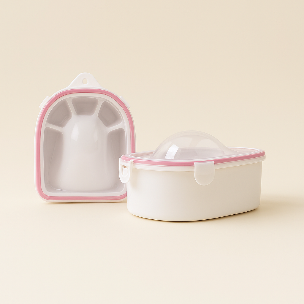 - Retirez le couvercle transparent du bol de retrait et remplissez le moule blanc à moitié avec de l’eau chaude.