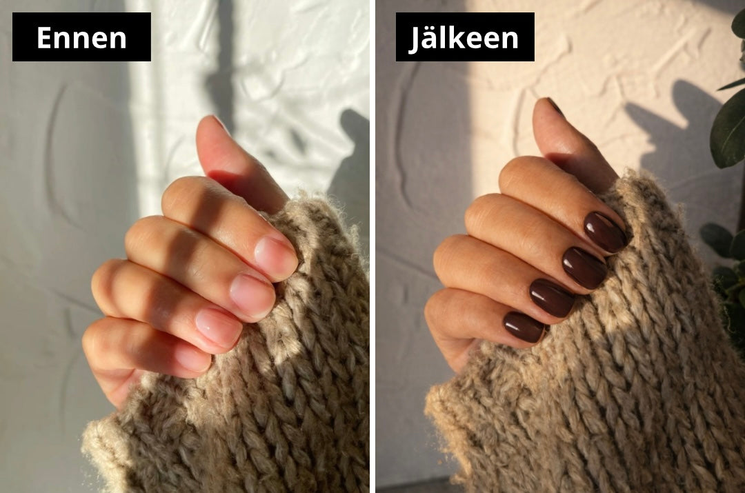 Lopputulos: tarkemmat linjat kynsinauhojen kohdalla ja ammattimaisempi lopputulos, joka kestää yli 3 viikkoa.